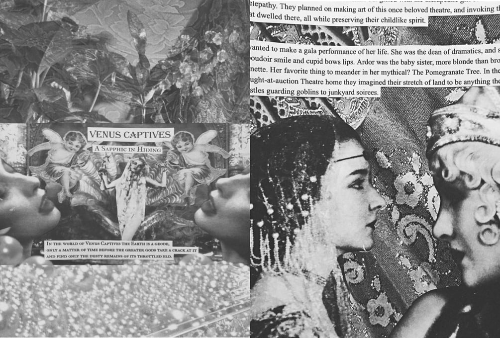 Venus Captives: A Sapphic in Hiding, is the first in a series of tales about two twin sisters that live a decadent lifestyle in a big abandoned theatre. A Sapphic in Hiding follows a lesbian love affair in the midst of a goddess cult.